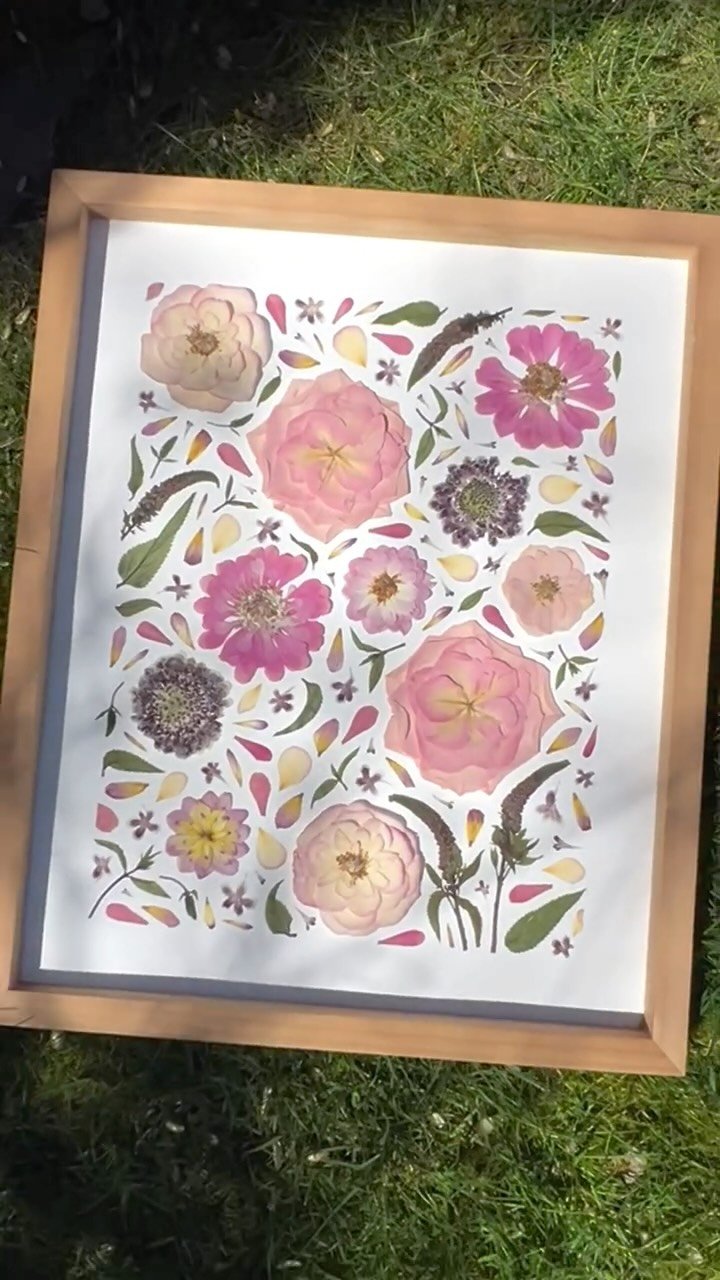 • On museum grade cold press paper we delicately assemble your unique pressed florals. Creating an everlasting memory and preserving your flowers. We focus on finding beauty in even the smallest petals. We find these are usually the most captivating. The whole process can take 4-6 months.
