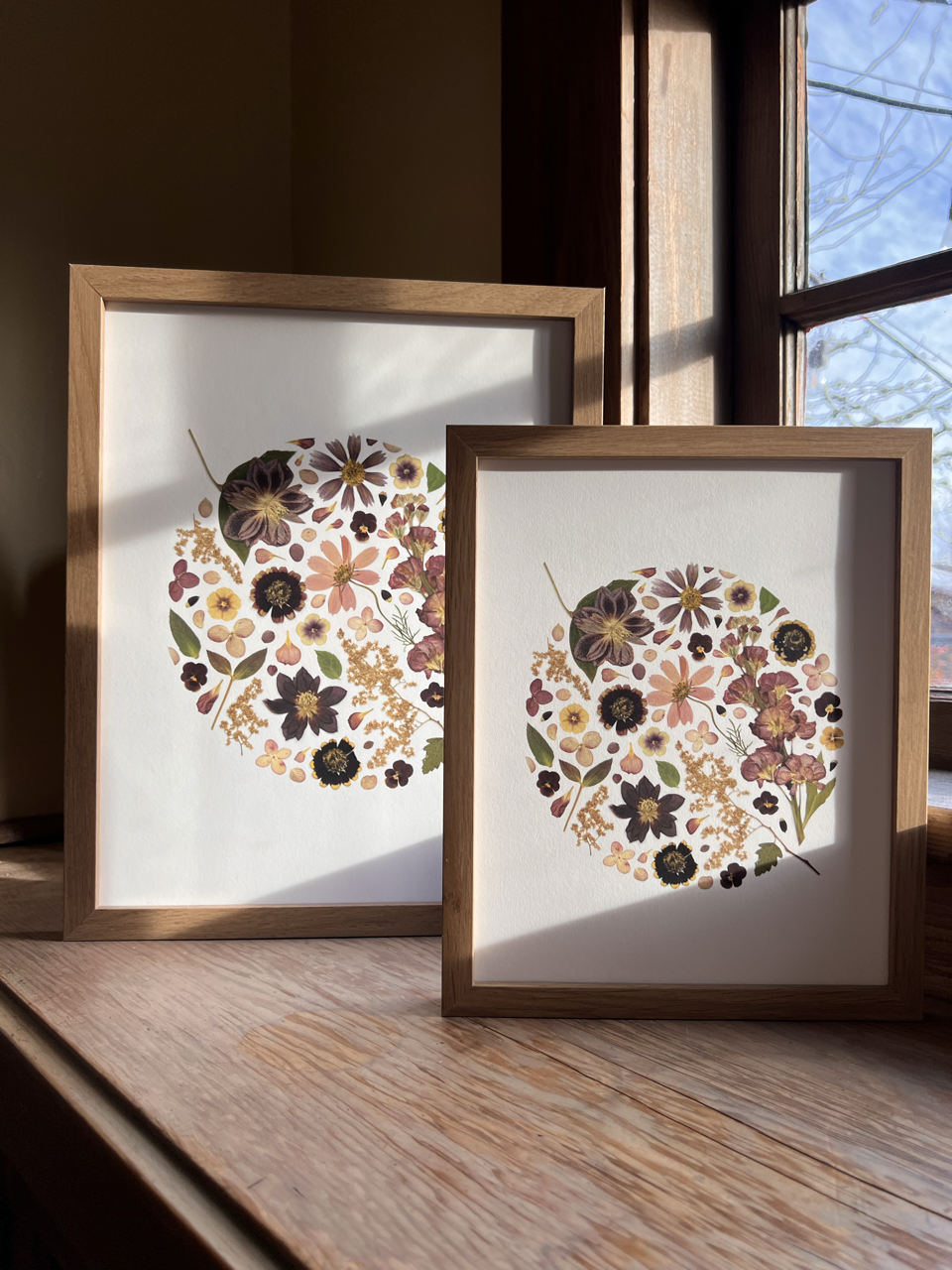 Cosmo, Zinnia & Hydrangea Study | Pressed Flower Print